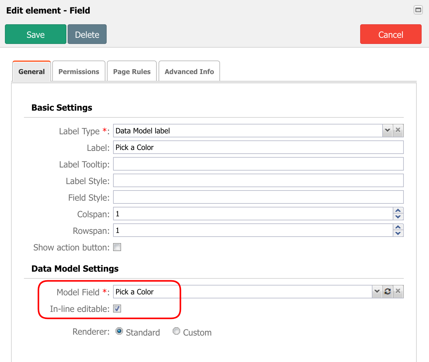 In the pop-up window, check the option In-line editable as shown in the following image.
