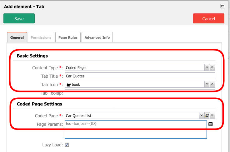- On the Coded Page Settings, select the Coded Page created in the previous step. In our example, Car Quotes List