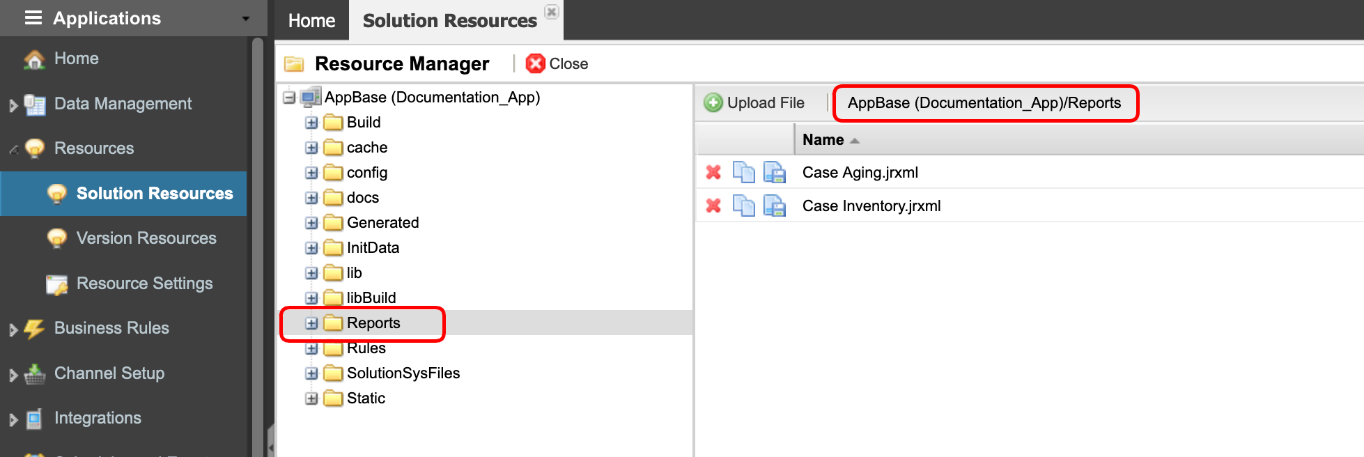 - You can upload Jasper's reports (.jrxml files) directly in the Reports folder.